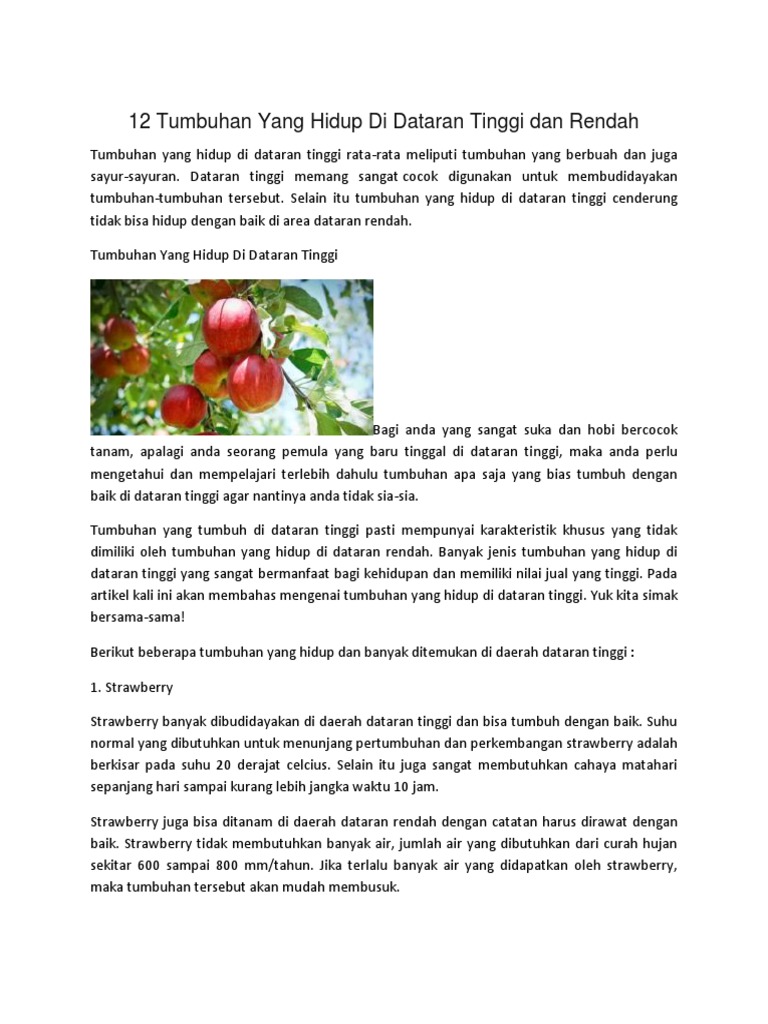 12 Tumbuhan Yang Hidup Di Dataran Tinggi Dan Rendah Docx