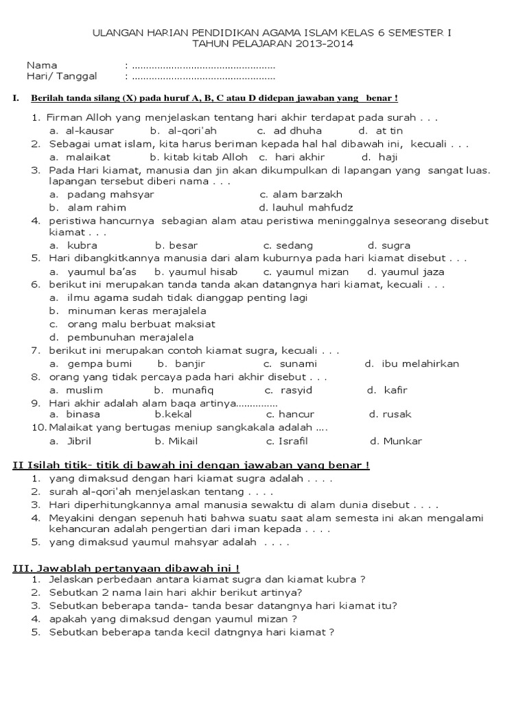 Soal Ulangan Kls 6