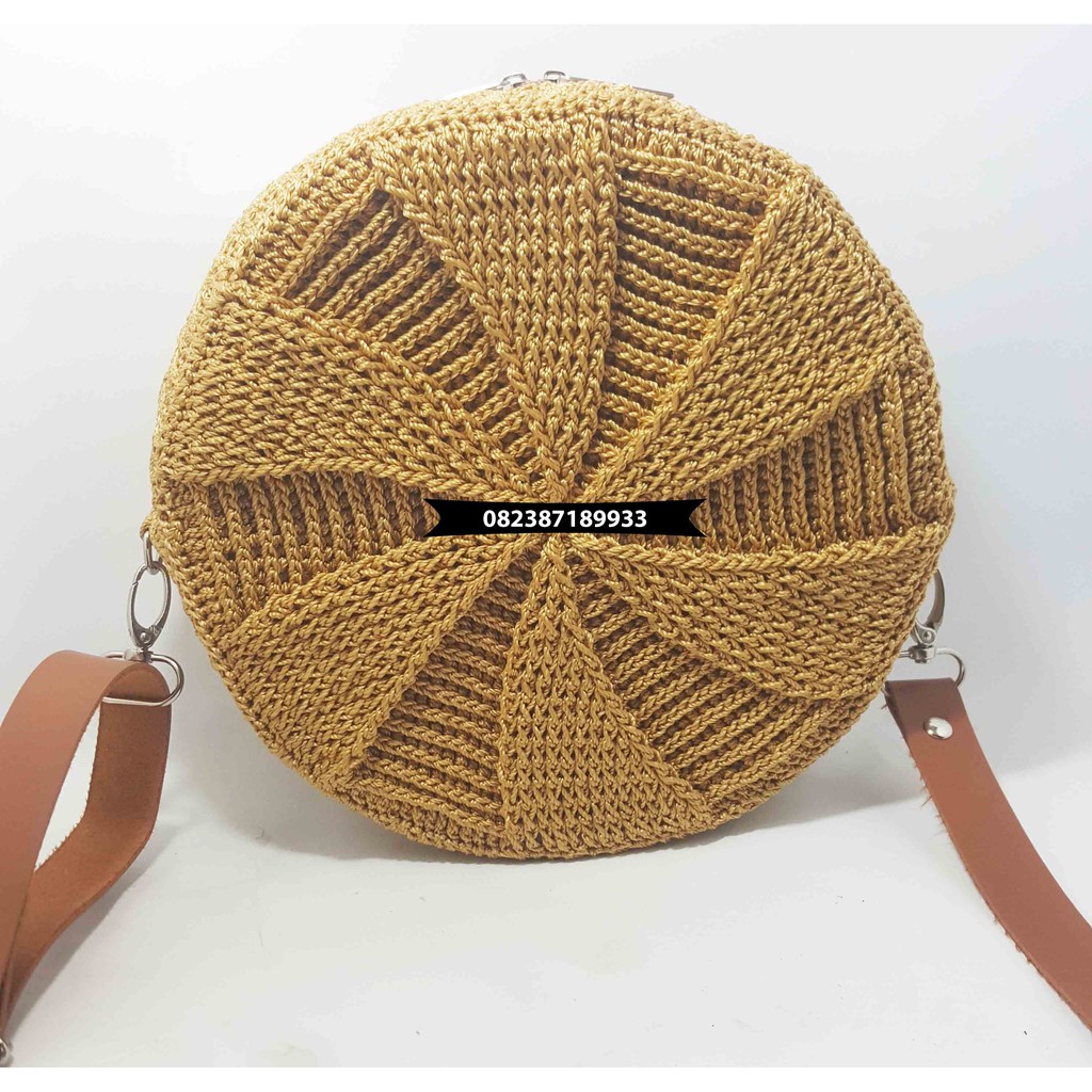 Tas Rajut Bulat Motif Kipas Warna Gold Shopee Indonesia