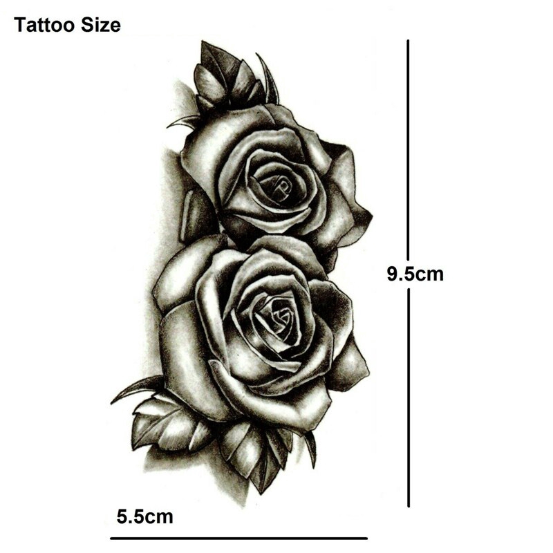 3d Wanita Daun Sketsa Kaki Mawar Hitam Lengan Palsu Seni Tubuh