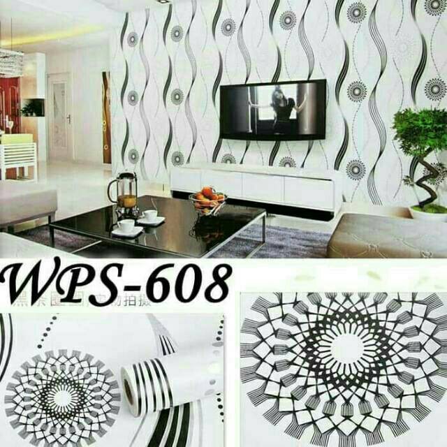 10m Wallpaper Dinding Cakra Bunga Matahari Hitam Putih 45cm X 10m