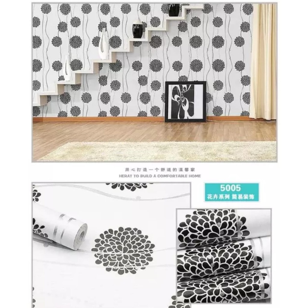 Wallpaper Dinding Ukuran 45 Cm X 10 M Motif Dandelion Hitam Putih