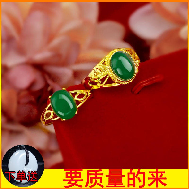 Fashion Warna Emas Cincin Pernikahan Wanita Perhiasan Dengan Hijau