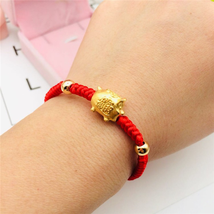 Gelang Tali Keberuntungan Bentuk Babi Warna Emas Merah Gelang