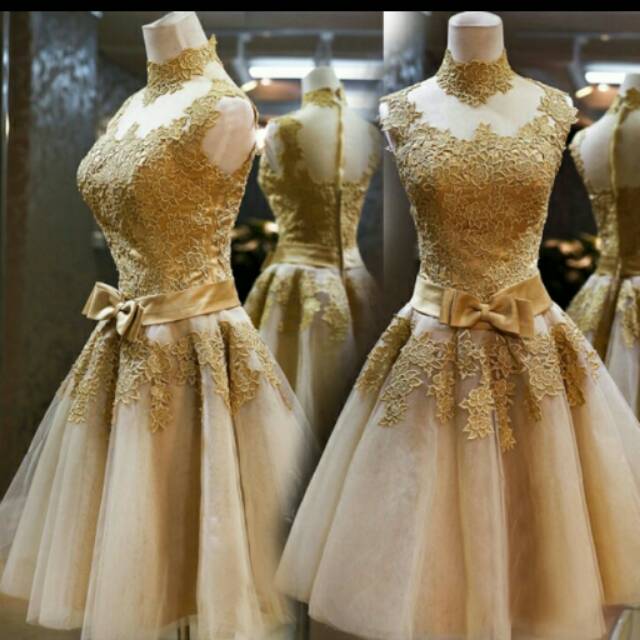 Gaun Pesta Cantik Warna Gold Ukuran M Shopee Indonesia