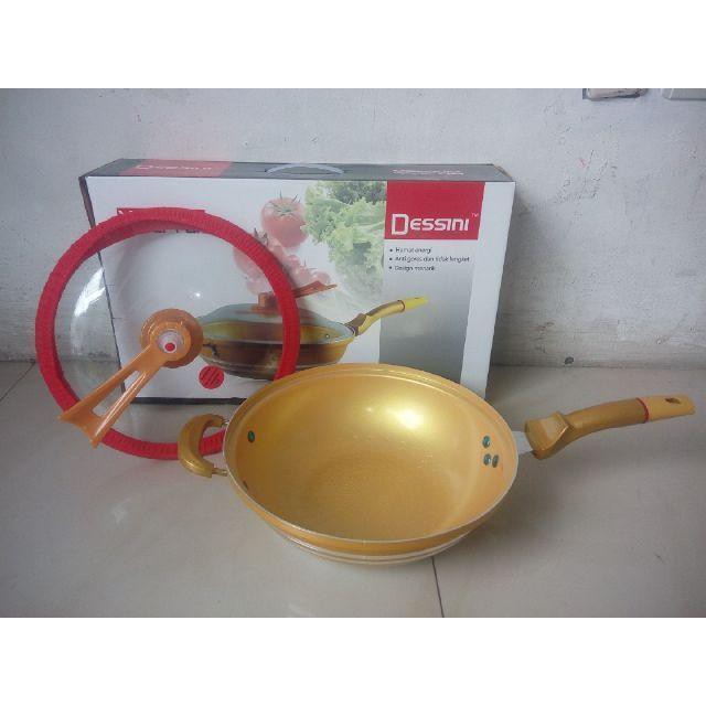 Panci Sehat Gold Wok Pan Slow Cooker Dessini Teflon Masak Warna