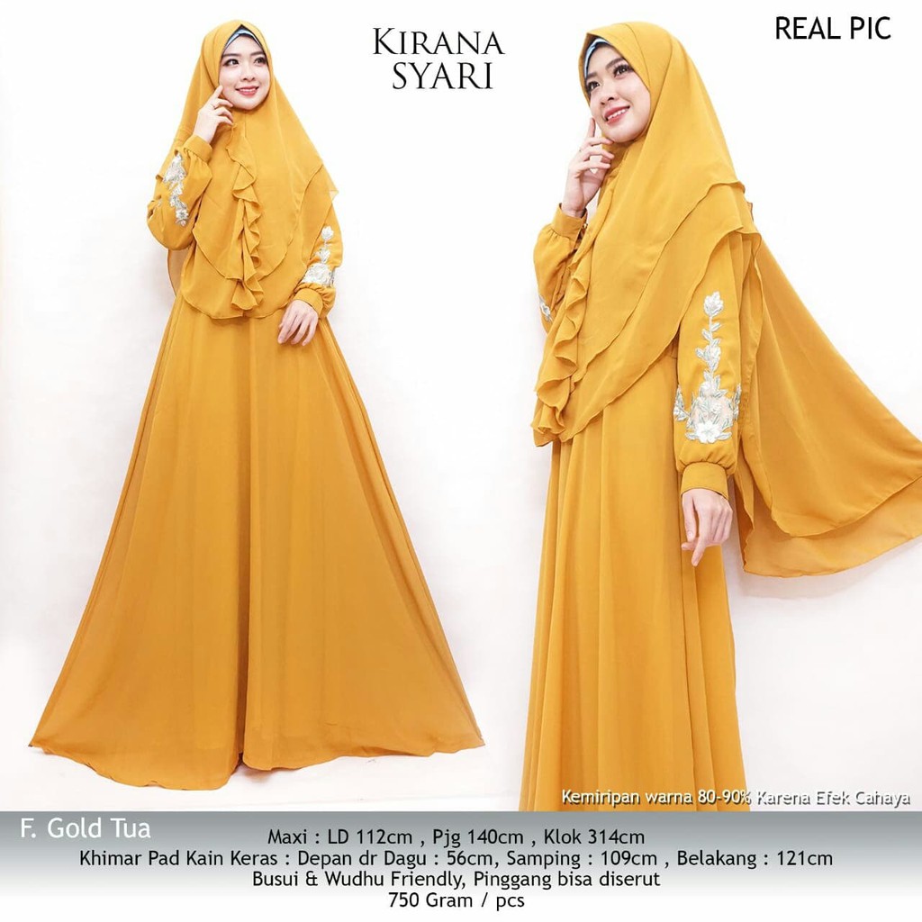 M55 Baju Pesta Wanita Syari Gamis Kirania Bhn Ceruty Full Furing Kombi Bordir Tangan Warna Gold Tua Shopee Indonesia
